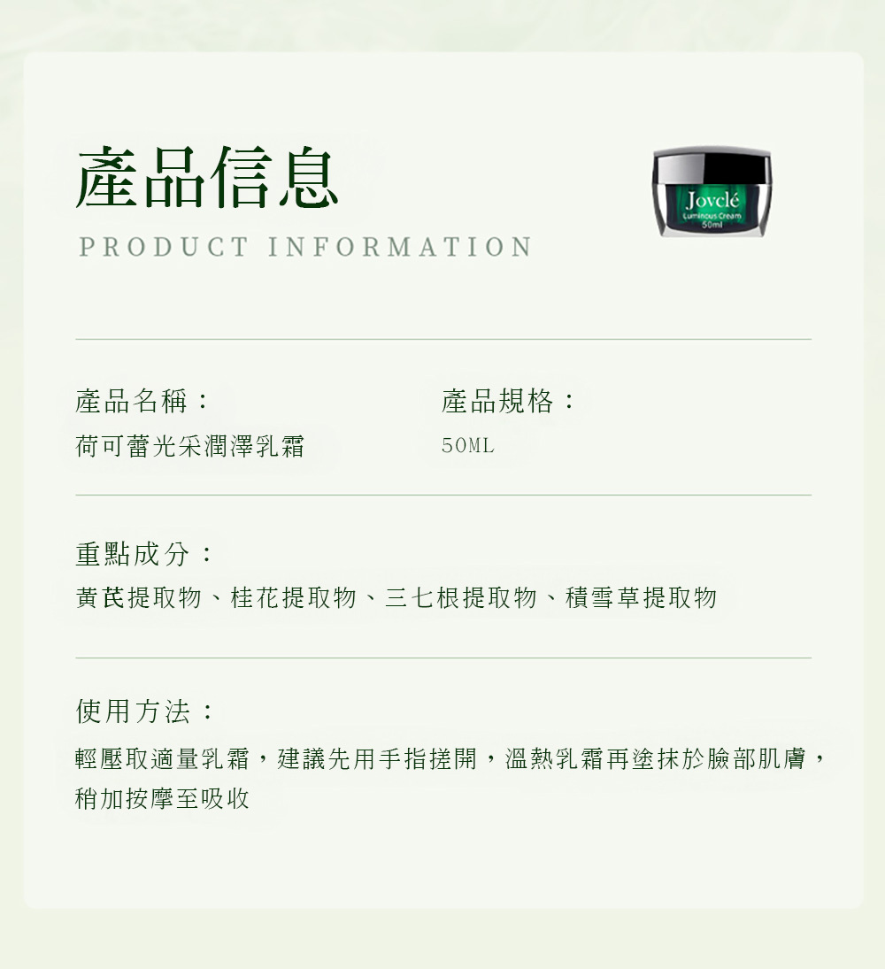 早晚皆可使用,長效保濕,提升肌膚防禦力,延緩老化,舒緩並提亮膚色。