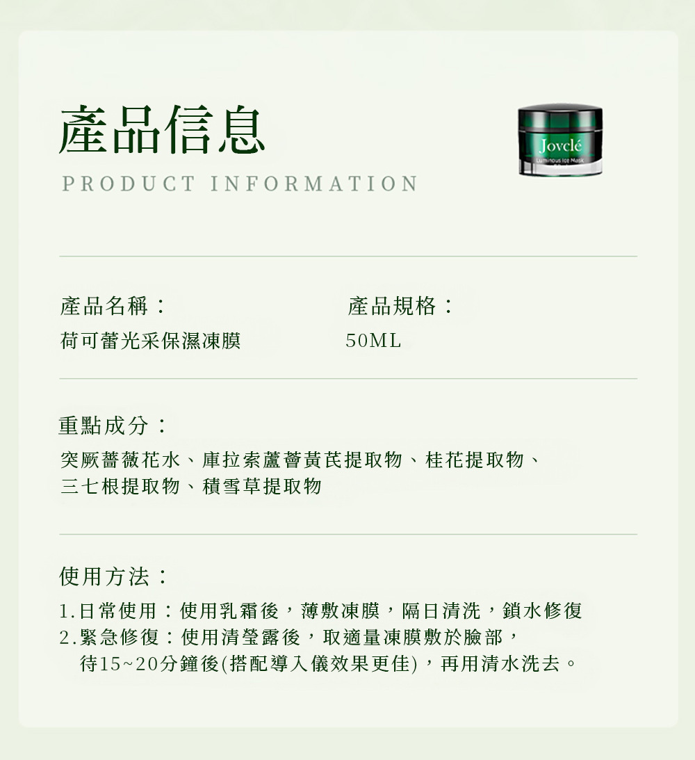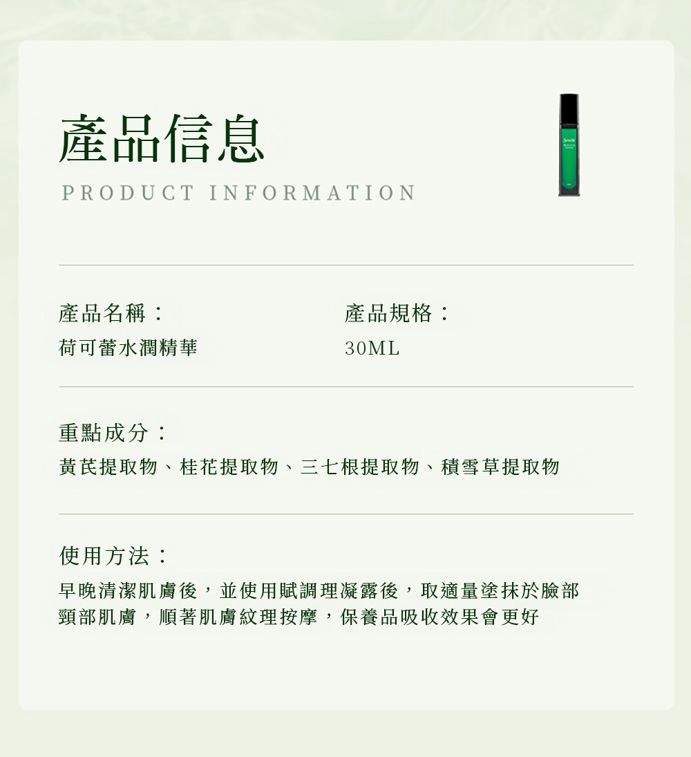 早晚皆可使用,長效保濕,提升肌膚防禦力,延緩老化,舒緩並提亮膚色。